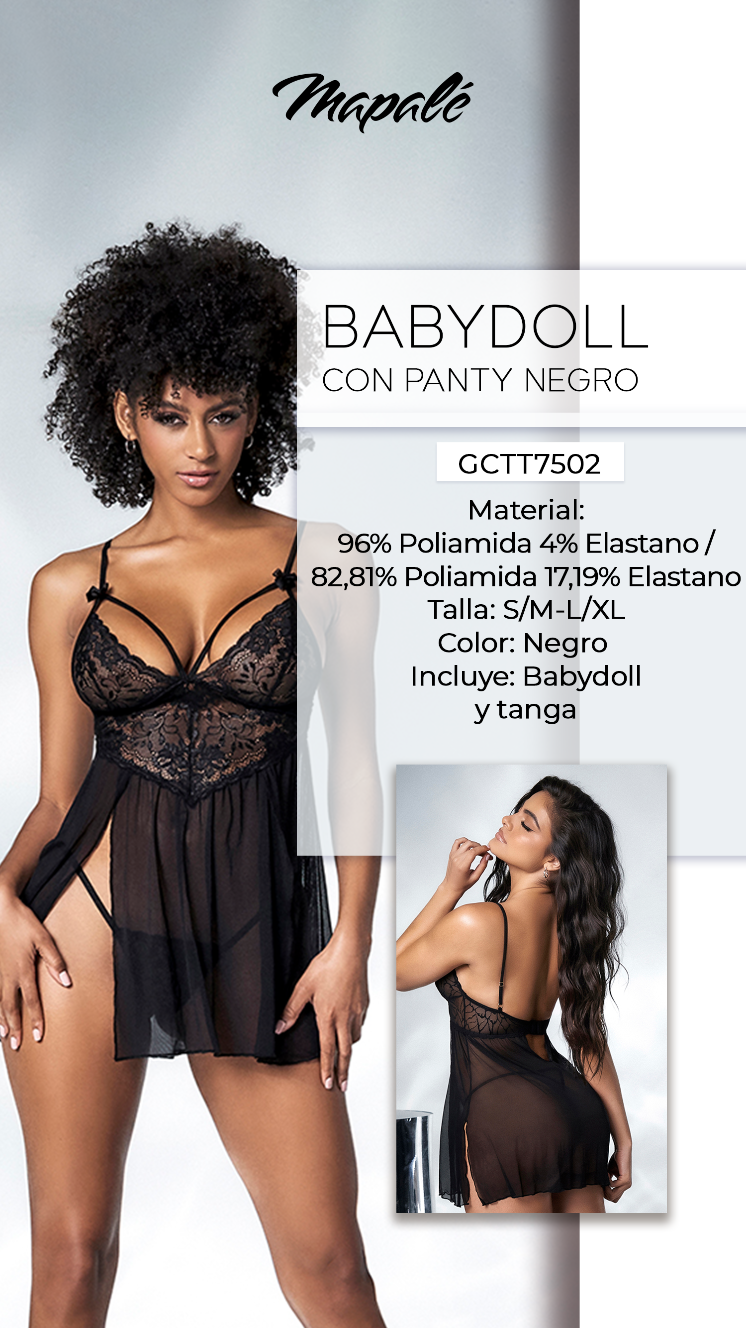 Babydoll con tiras ajustables, ideal para una noche de pasión.