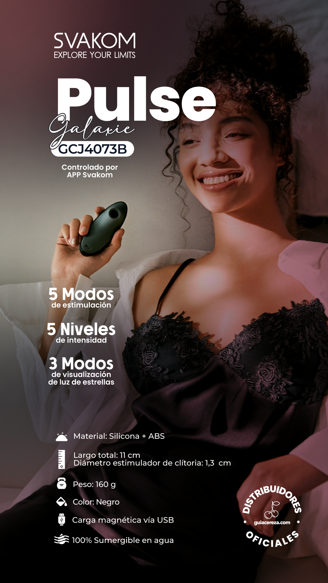 Estimulador Clitorial Pulse Galaxie Midnight Black Controlado por APP Global By Svakom