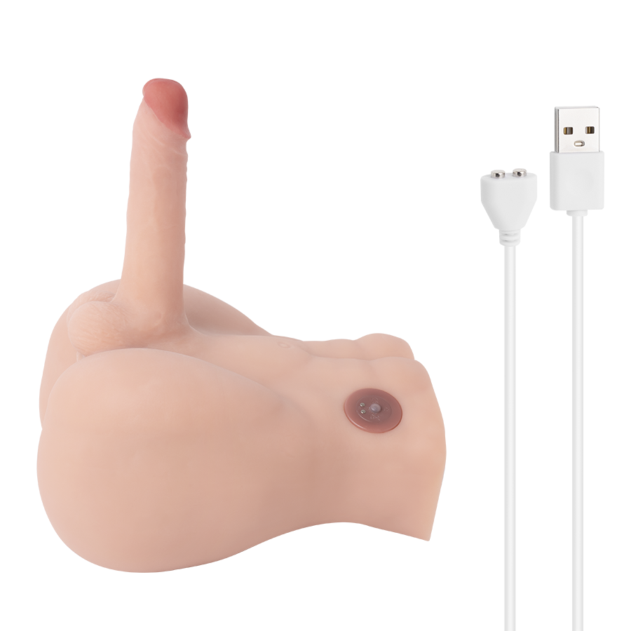 Nuestro medio torso masculino, con un abdomen marcado y trabajado al detalle, no solo conquista ante las cámaras por su imponente apariencia, sino también por su excelente dotación y potentes niveles de vibración.