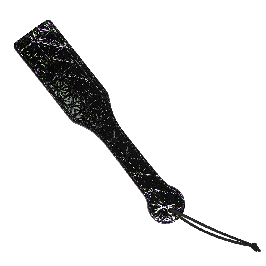 Paleta de nalgadas totalmente rígida con grabados en 3D.