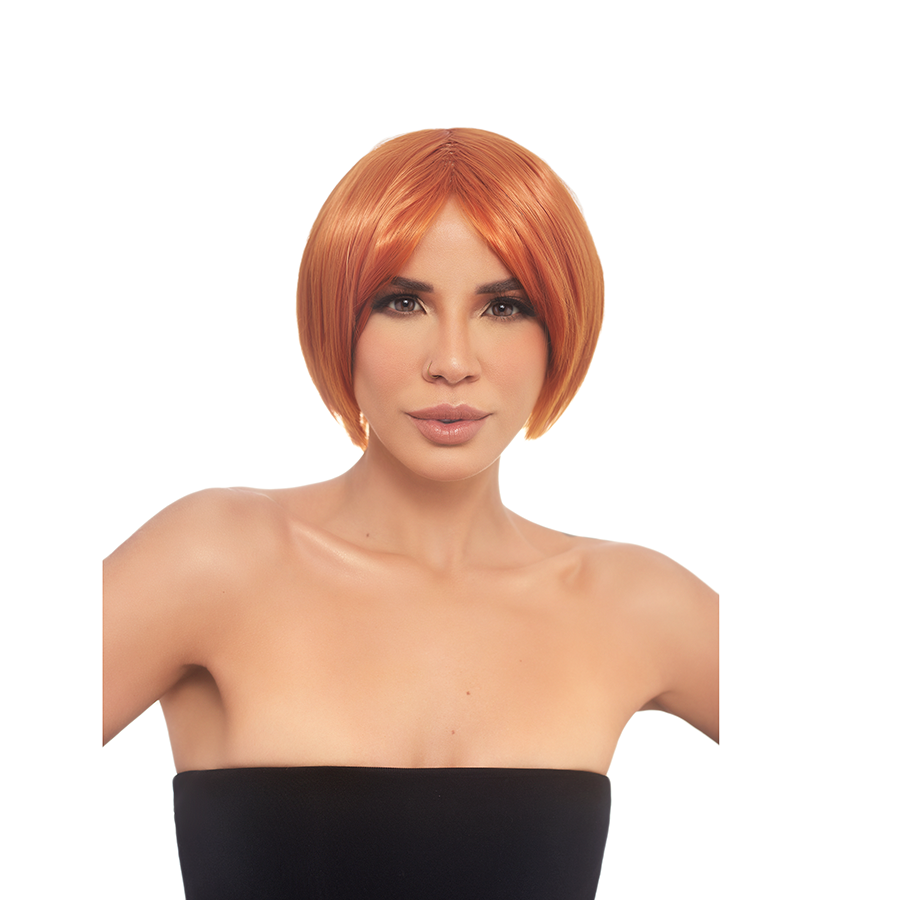 Dale vida a tu look con esta peluca corta en un intenso y brillante tono cobre. Su corte estilizado y fresco combina la modernidad con la calidez del color, creando un estilo único que atrae todas las miradas.