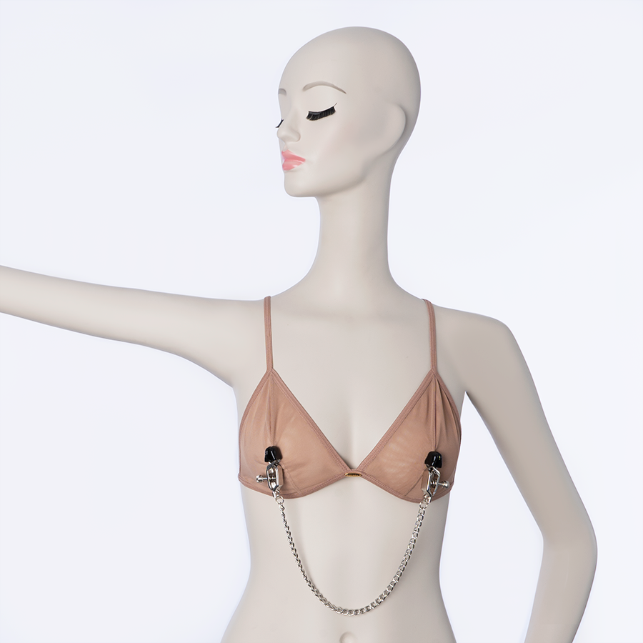 Pinza para pezones con tornillo ajustable para mayor presión sobre la zona, viene con cadena decorativa