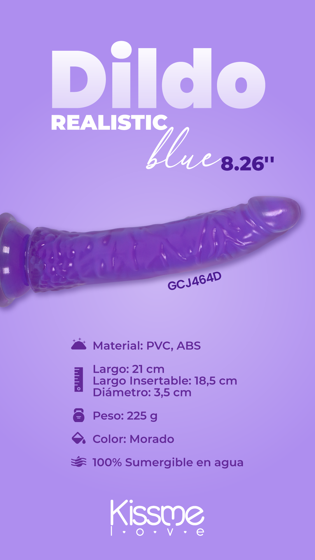 Dildo con forma fálica y cuerpo venoso. Cuando con ventosa en la base para adherirse a superficies planas y hacer un juego libre de manos.