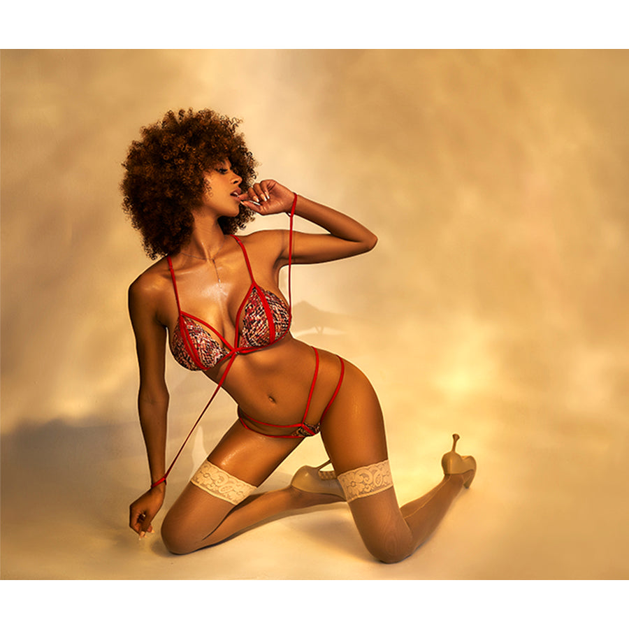 Llena tu intimidad de sensualidad con este conjunto de tres piezas, top, panty y tapa ojos.