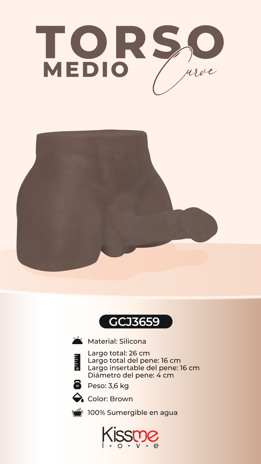 Torso medio cuerpo con pene y orificio para penetración anal.